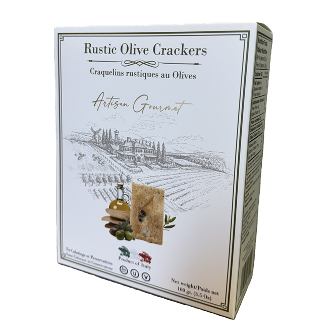 Rustic Olive crackers 100 gr., By Artisan Gourmet Dual display box |